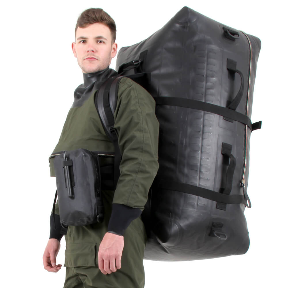 A large watertight and airtight bag with integrated MOLLE system. With an 8-pitch heavy duty BDM metal dry zip the large bergen is manufactured from black 600D nylon TPU CN and has welded seams for extra reinforcement.
