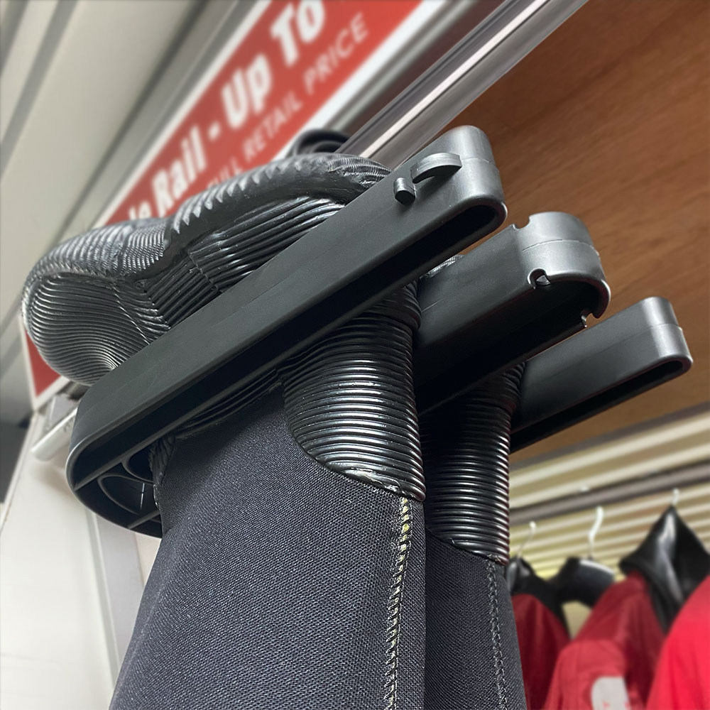 Northern Diver has designed a drysuit hanger specifically for drysuits with hard sole boots, allowing for proper drying, storage, and maintenance.