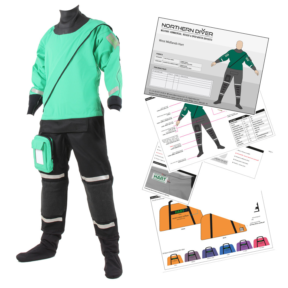 Suits can be supplied with a maintenance kits, storage bag/changing mat, additional items such as thermals, gloves and water boots can be packaged together - you can discuss this with the Northern Diver Rescue Sales Team.
